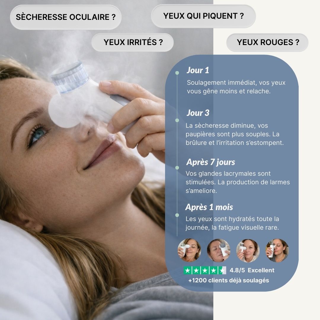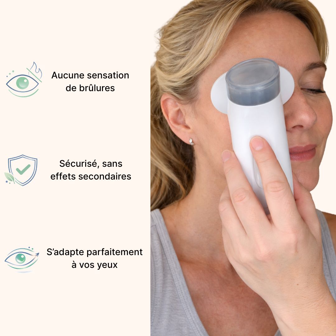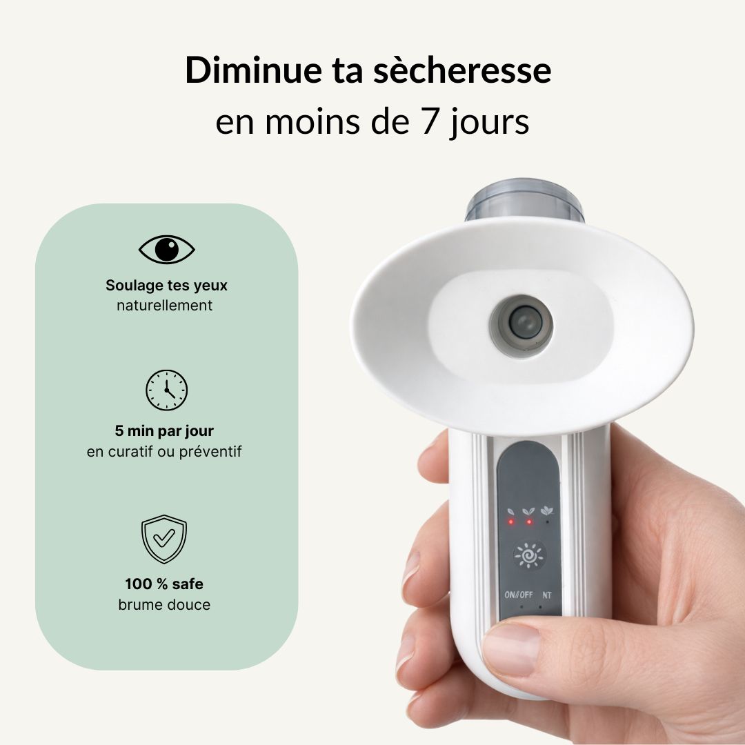 Des études montrent que la chaleur appliquée autour des yeux améliore la qualité du film lacrymal et réduit les symptômes de sécheresse oculaire.